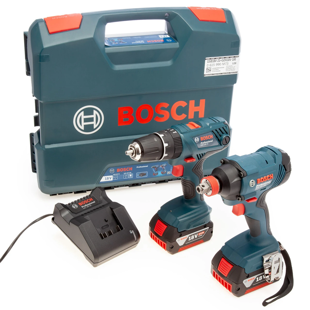 Bosch 18V Twin Pack – GSB 18V-21 Combi + GDX 18V-180 Impact Driver/Wrench (2 x 4.0Ah Batteries) in Case