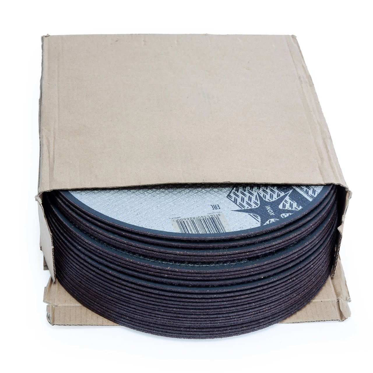 The Bosch 2608601514 is a box of 25 Standard for Inox Cutting Discs with a diameter of 230mm and a thickness of 1.9mm with a 22.23mm bore. Designed for cutting through Inox and manufactured from aluminium oxide these discs are made for angle grinders. They will produce a fast clean cut without burrs forming or blue discolouration.