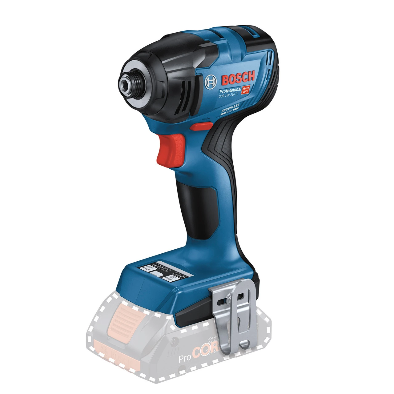 The Bosch GDR 18V-210 C Professional Brushless Impact Driver with 1/4” hexagonal bit holder prevents damage before it occurs