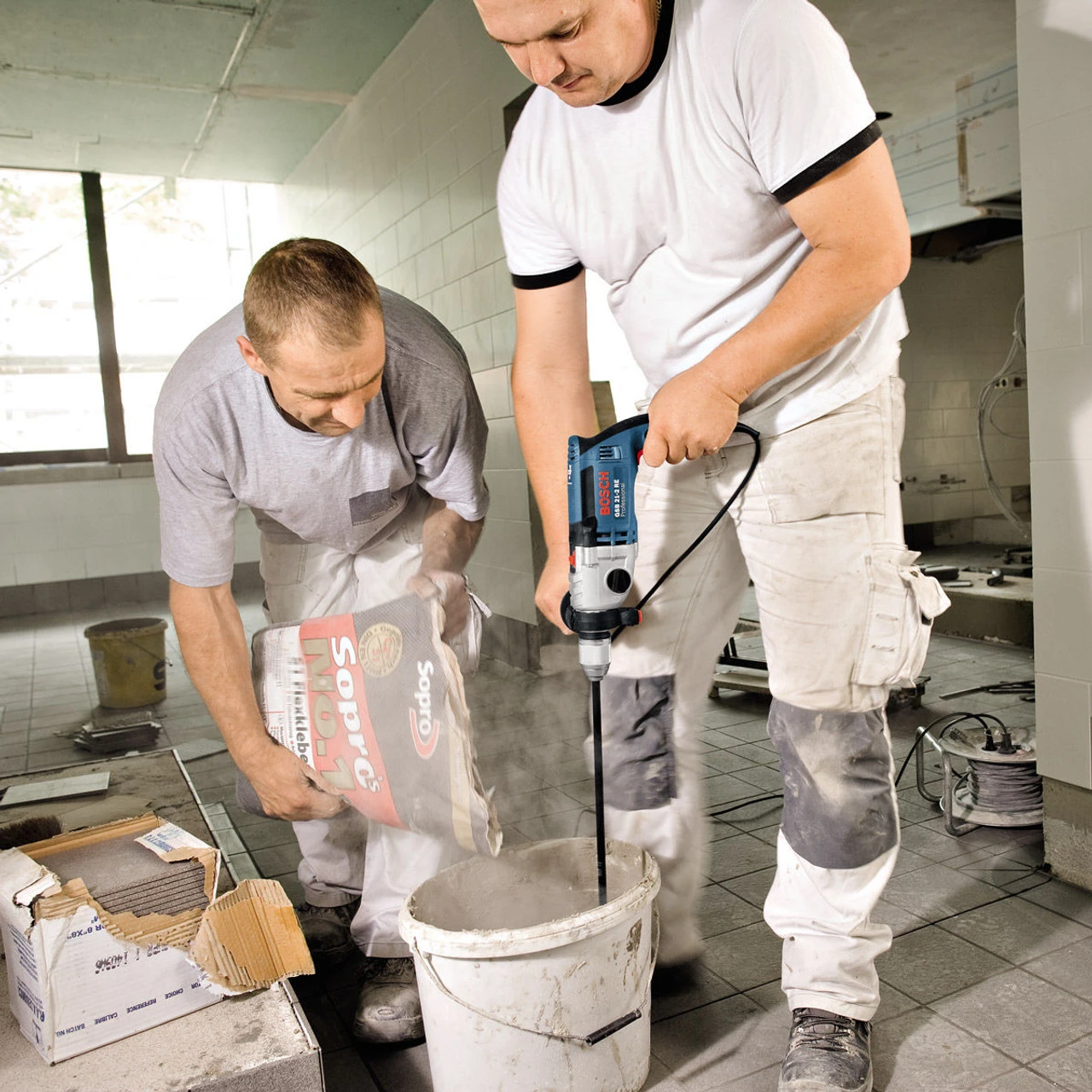 - Bosch high-performance motor (1100 W) with high torque for the most heavy-duty applications with large diameters (drilling, working with core cutters and holesaws), screwdriving and stirring