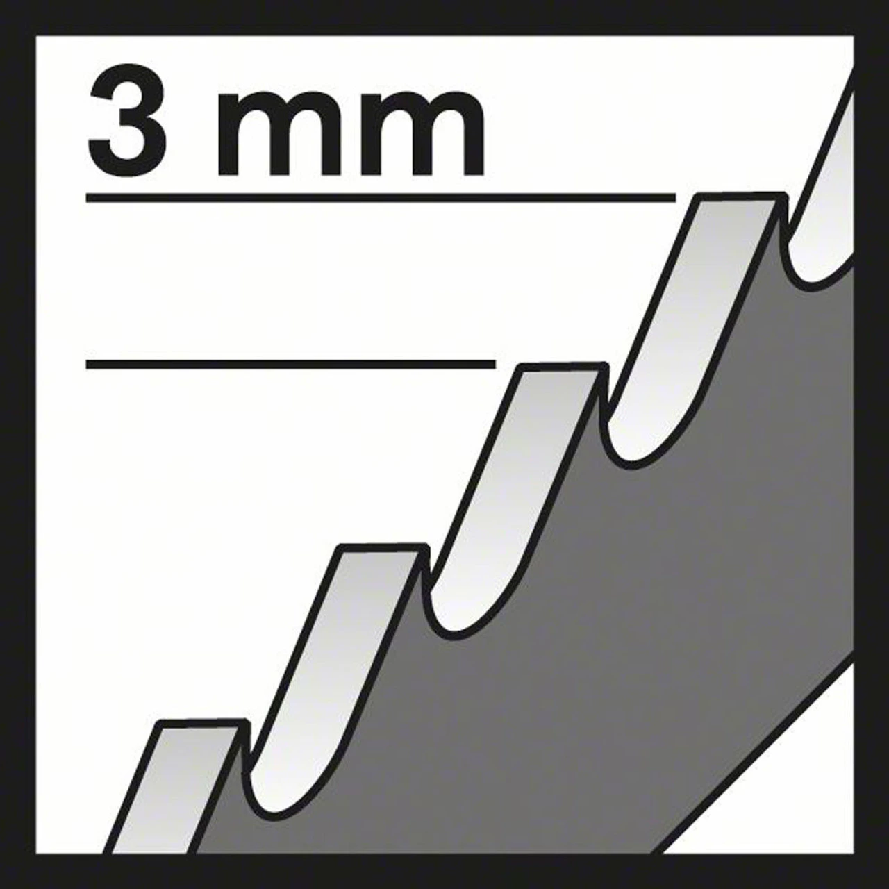 - Medium tooth pitch (3 mm) cuts thick woodworking materials with 4-50 mm thickness