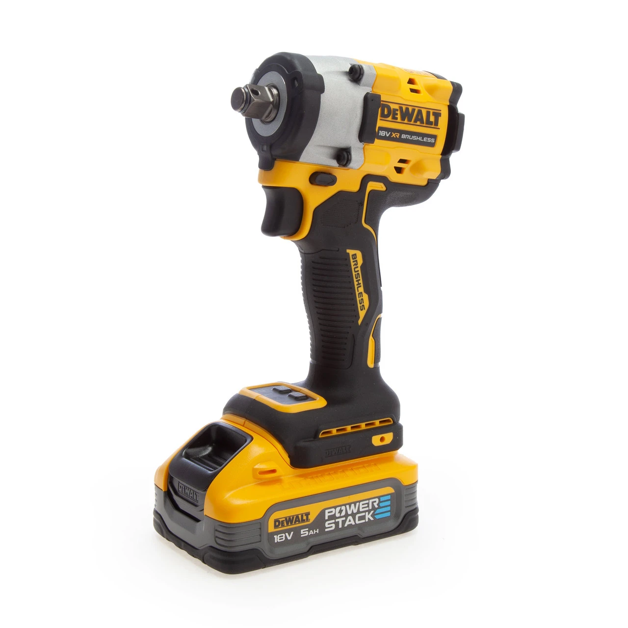 Featuring a brushless motor, the DCF921H2T delivers exceptional power and efficiency, ensuring reliable and consistent performance even during the toughest applications. With its 1/2″ hog ring anvil, this impact wrench allows for quick and easy socket changes, saving you valuable time and effort on the job. The compact and lightweight design of the DCF921H2T ensures optimal manoeuvrability and control, making it ideal for working in tight spaces and overhead applications. It delivers up to 406Nm of fastening torque and 610Nm of breakaway torque allowing you to tackle a wide range of tasks, from fastening and loosening bolts to removing stubborn nuts and bolts with ease. This model comes supplied with Powerstack batteries, Dewalt’s most powerful, compact, and lightweight battery system to date.