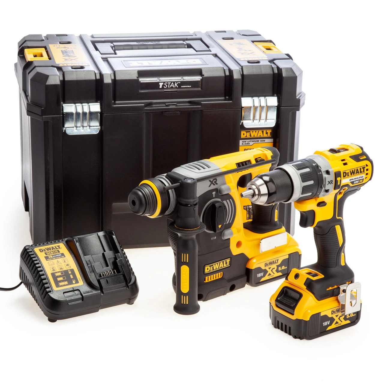 The Dewalt DCK207P2T 18V XR SDS Plus Rotary Hammer & Combi Drill Twin Pack with Brushless motors for extreme runtime and reduced maintenance