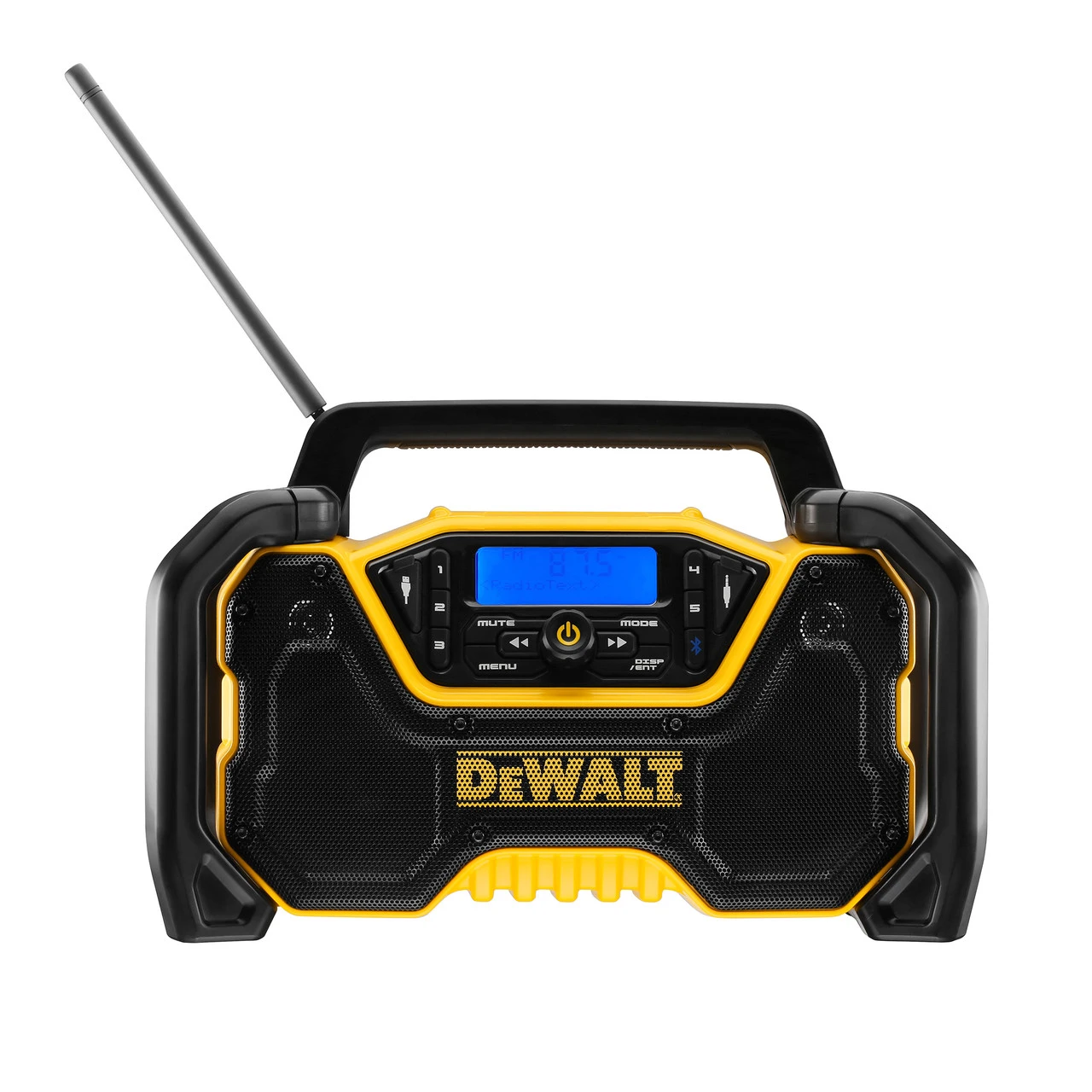 The Dewalt DCR029 12V-18V Bluetooth Radio DAB/FM has upgraded high volume audio to avoid distortion. With Bluetooth connectivity and AVRCP to control streaming audio either on the unit or on a mobile phone, so you’ll never have a shortage of options on the jobsite. Designed with an integrated handle & external roll cage, this tough radio is robust enough to withstand the rough and tumble in the harshest of environments. Power comes from a detachable mains power supply for AC power input or 12v, 18v and 18v/54v FLEXVOLT batteries.
