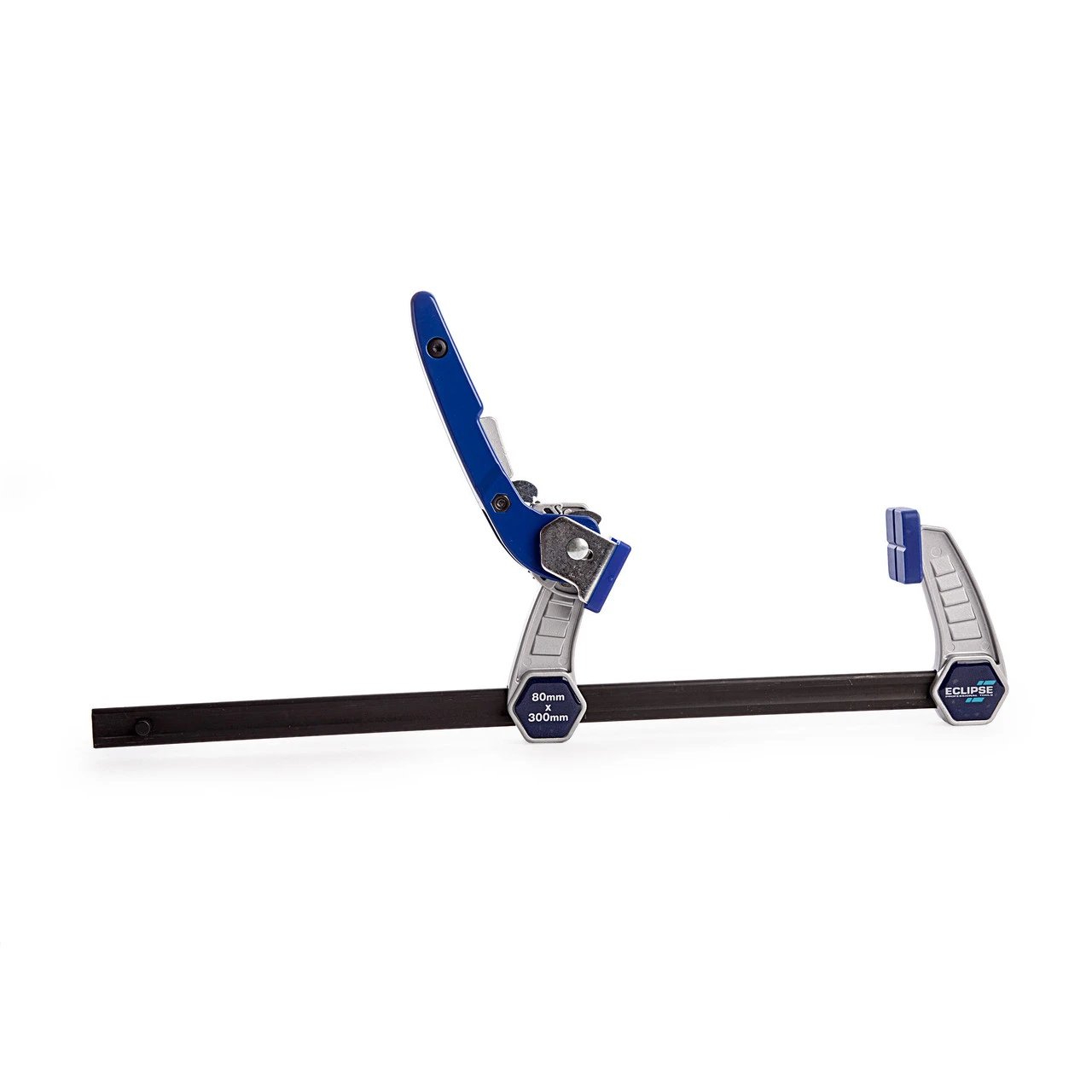 The Eclipse ELC80-12 Quick Release Lever Clamp has a clamping capacity of 12 Inches / 300mm and a throat depth of 80mm. It is ideal for gluing, positioning & fastening in woodworking applications. The lightweight aluminium frames are both strong and durable. Lever-operated ratcheting clamp arm is easy to operate and generates secure clamping power and locks onto the workpiece with ease.