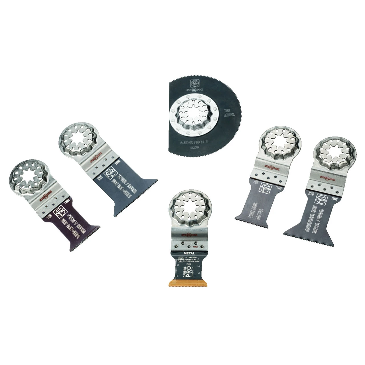 The Fein 35222967020 has 6 saw blades, especially designed for machining hardened and non-hardened metals