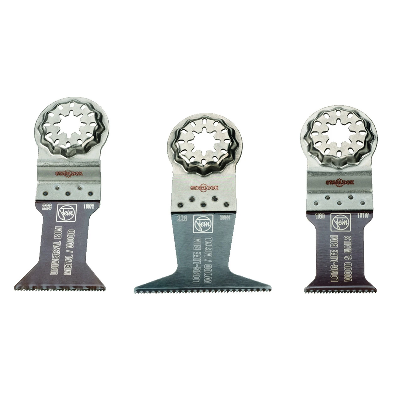 The Fein 35222967100 contains 3 different E-Cut plunge-cut saw blades for sawing in PVC, wood and metal. Compatible with all FEIN Multitools and many popular Multitool brands with Starlock mounting systems such as Fein, Bosch, Festool, Milwaukee and Makita and more.