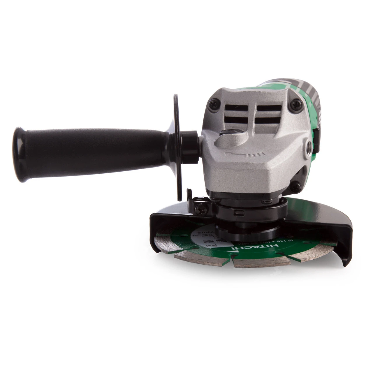 The HiKOKI G 12STX is a 115mm Angle Grinder suitable for all grinding applications. It is the best angle grinder in its class, featuring a small barrel for comfortable handling and up to 19% more durability. You can expect 5% better grinding performance than its competitors. Thanks to the newly-designed large fan and optimized airflow, this model has extreme power and long lifetime.