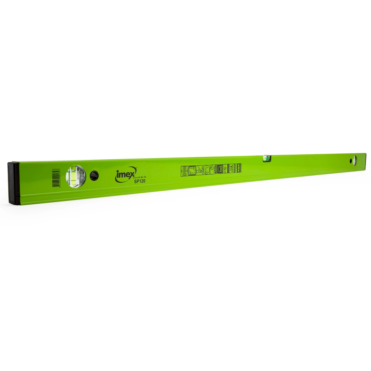 The Imex SP120 is a Heavy Duty Professional Spirit Level measuring 1200mm in length. The Storm series from IMEX incorporate high accuracy vials with a rugged double ribbed reinforced high visibility box section. For all-day use by every professional tradesman, manufactured in Europe to IMEX exacting standard, these spirit levels stand up to the harshest working environments.