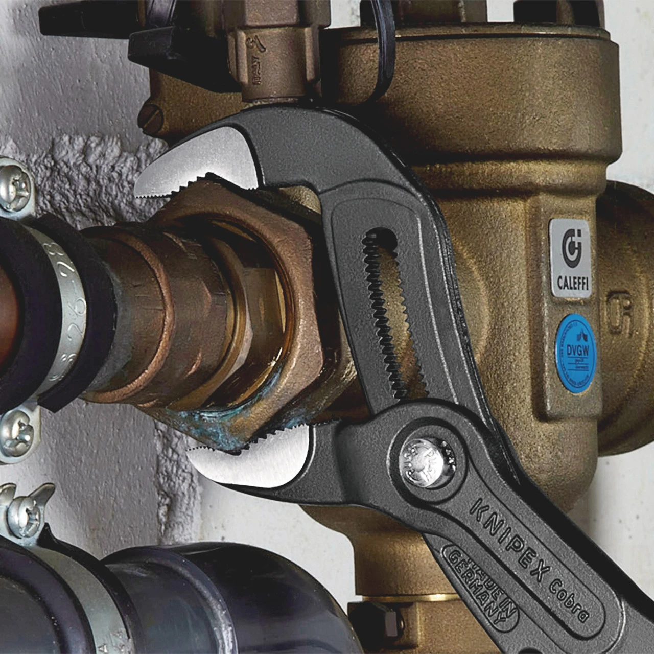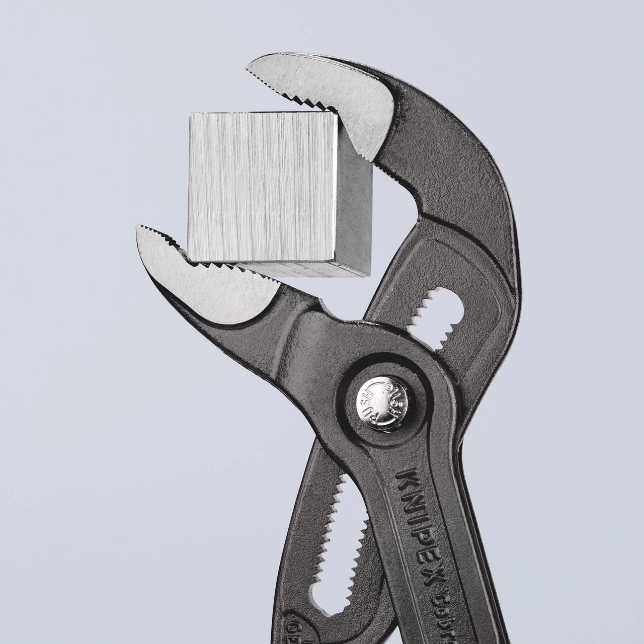 The KNIPEX 8701300 Cobra offers the performance and comfort of water pump pliers while being lighter in weight and having a greater gripping capacity than comparable pipe wrenches. The Cobra can grip a 2. 3/4 Inch pipe fitting and weighs 50 % less than a pipe wrench, which has a much lower gripping capacity. With its handy length of 300 mm, the Cobra XL also fits into a plumber’s tool kit. KNIPEX Cobra – the Hightech Water Pump Pliers. No more time-consuming presetting of the required opening size. Just position the upper jaw to the workpiece, push button and move close the lower jaw, ingeniously simple.