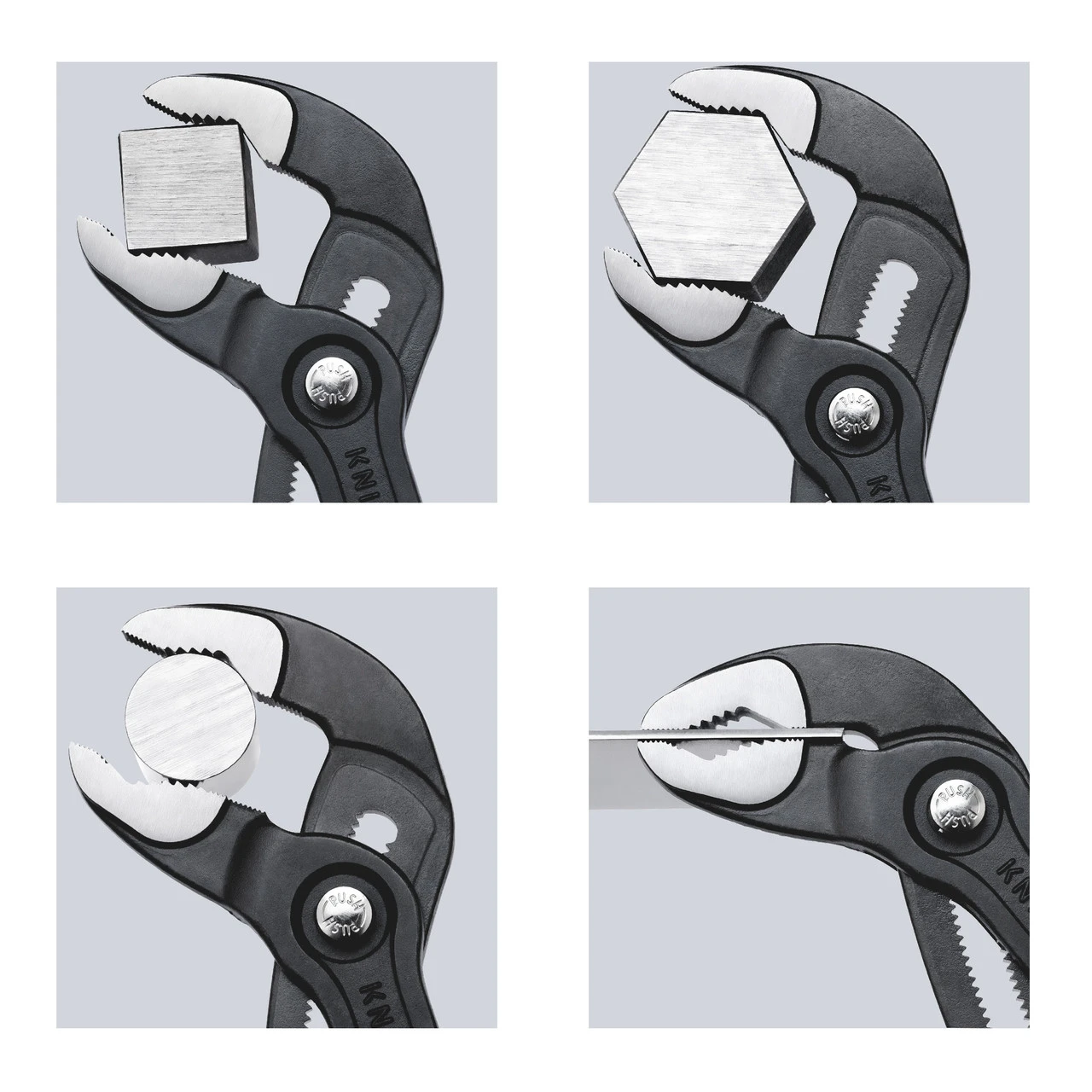 Knipex Cobra Hightech Water Pump Pliers are self-locking on pipes and nuts with no slipping on the workpiece