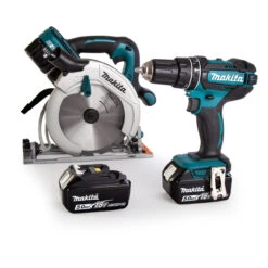 This Makita twin pack offers the ultimate power output. Featuring the DHS710 36V circular saw and DHP482 18V combi drill