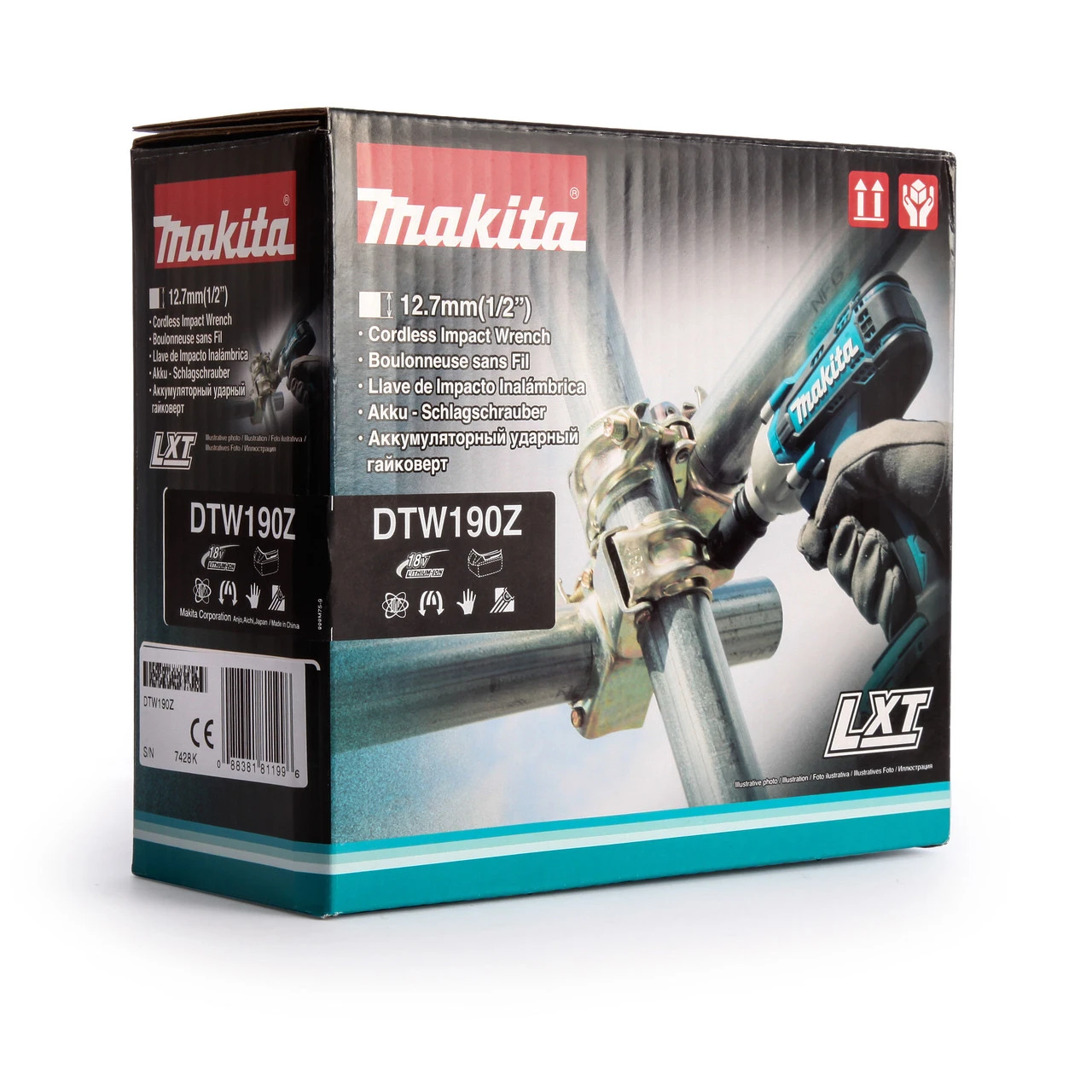 The DTW190Z is a Body Only entry level 18V cordless impact wrench with a 1/2 inch square drive and an optimal tightening torque of 190 N.m. Equipped with Battery protection circuit which is designed to protect the battery from damages due to overdischarge, high temperature or overload current. Sold without battery,charger or belt clip in a cardboard carton.