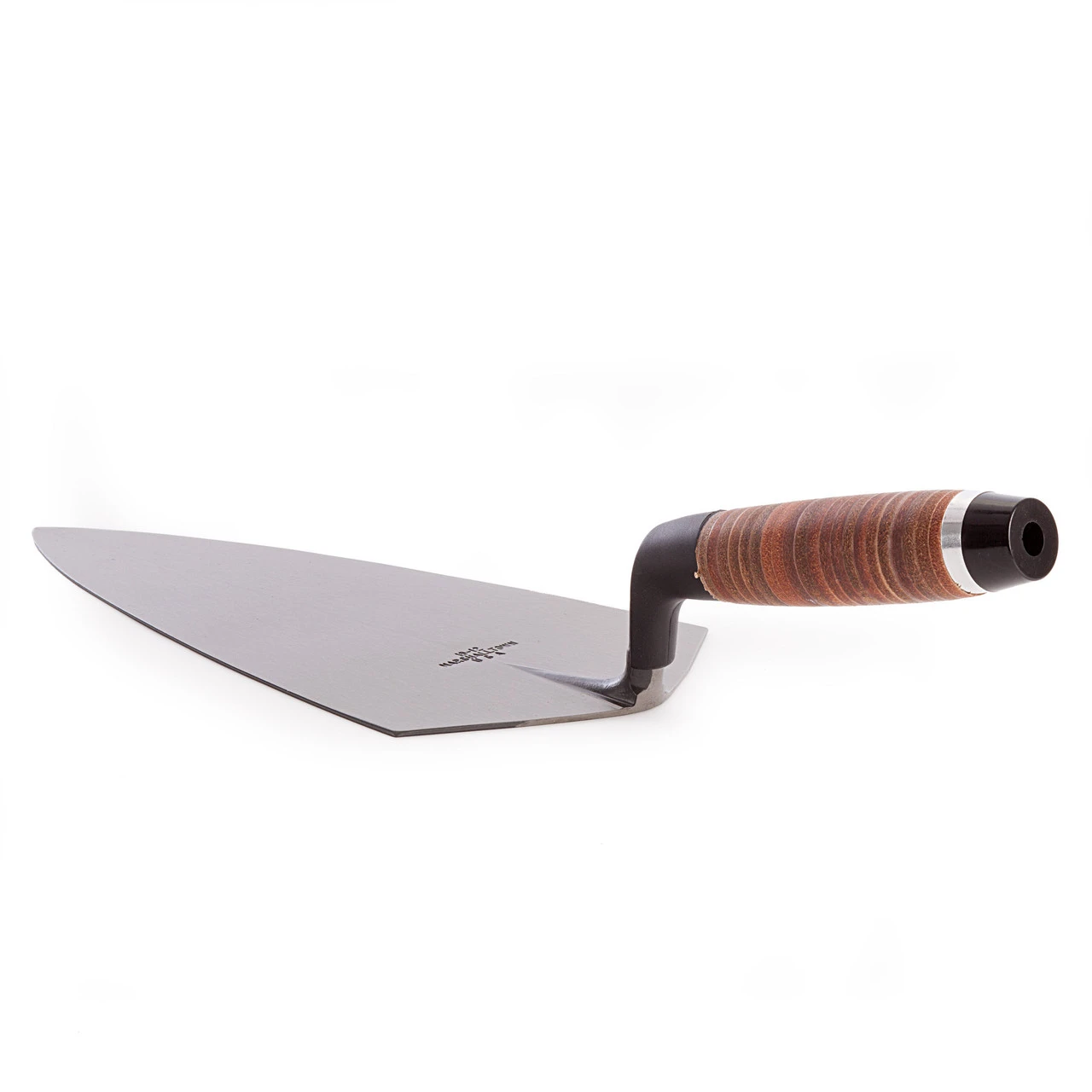 Use this Marshalltown brick trowel to level, shape and spread mortar and concrete. It is part of the 19 Series, featuring a leather handle and Philadelphia pattern. It has been forged from a single piece of high carbon steel, then heat-treated for maximum strength and durability. These trowels have been re-engineered and are produced on the most modern forging equipment available.