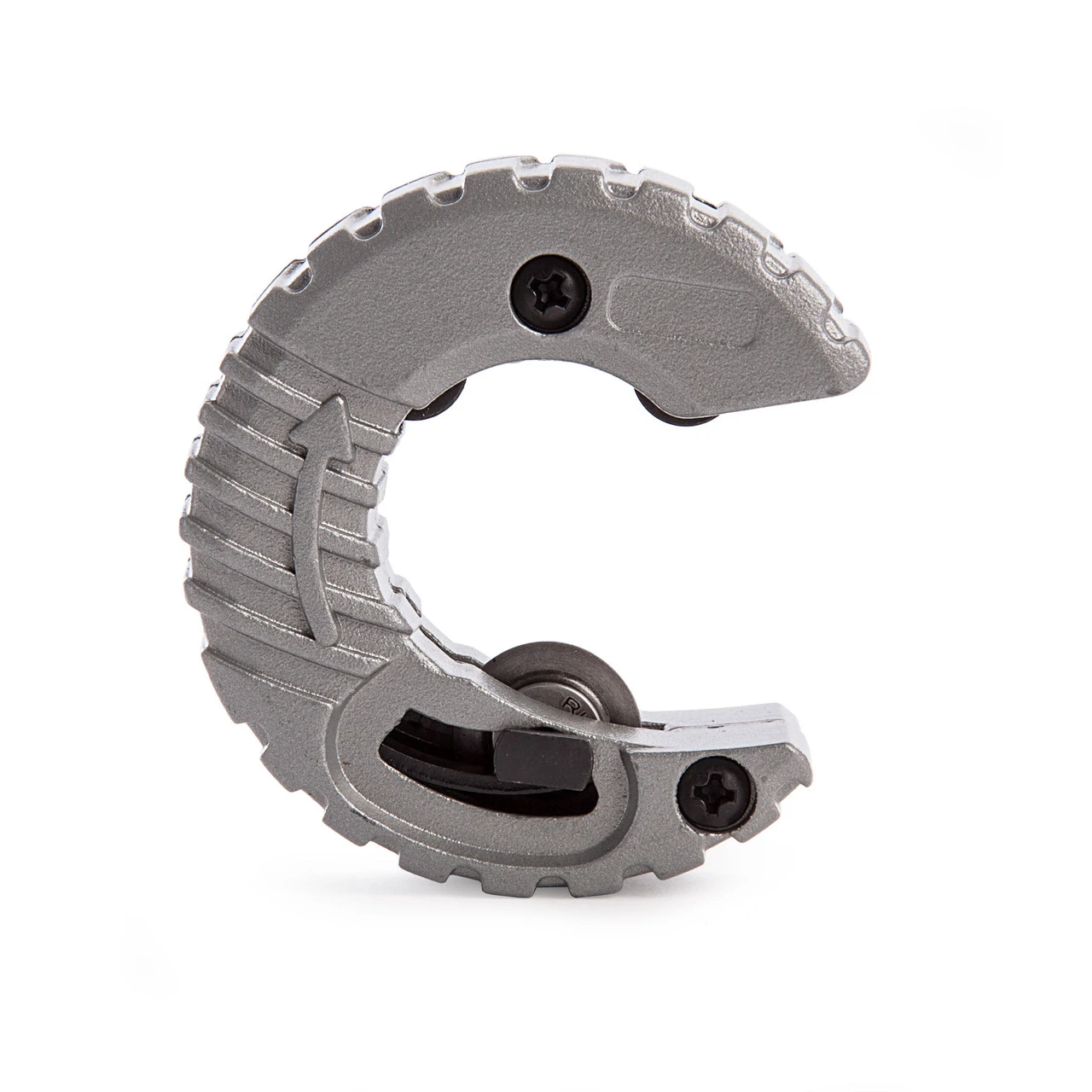 The Ridgid 60668 Copper Tube Cutter allows you to cut 28mm tubing with one cutter thanks to its quick-change feature. This spring-loaded cutter provides constant pressure on pipe providing fast and straight cuts every time. Its unique screwdriver slots in the housing provide the extra leverage for making the cut in extremely tight spaces.