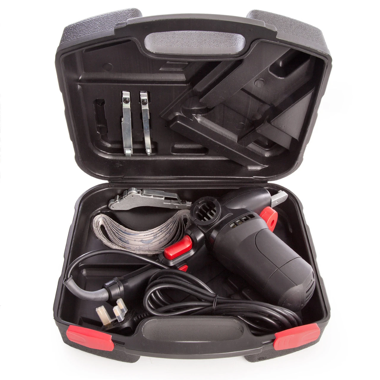 - Features three different sanding arms using 8 or 12mm belts to suit the working area