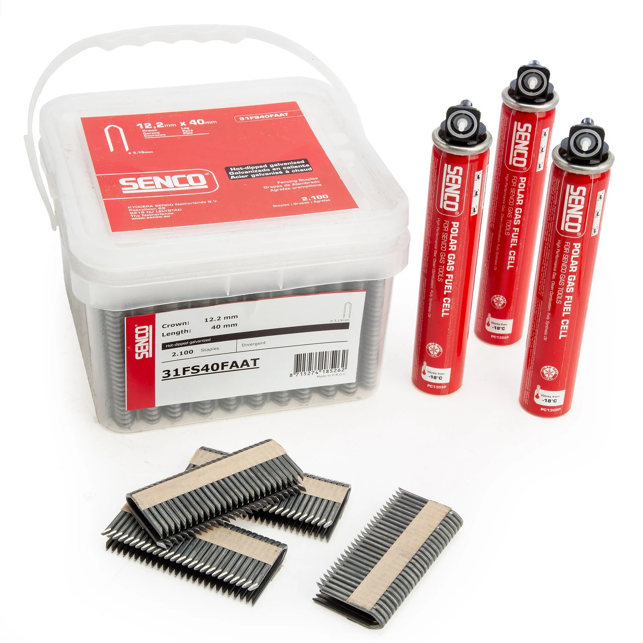 Senco 31FS40FAAT-3FC 12.2mm x 40mm Staples x 2100 and 2 x PC1308 Gas Fuel Cells