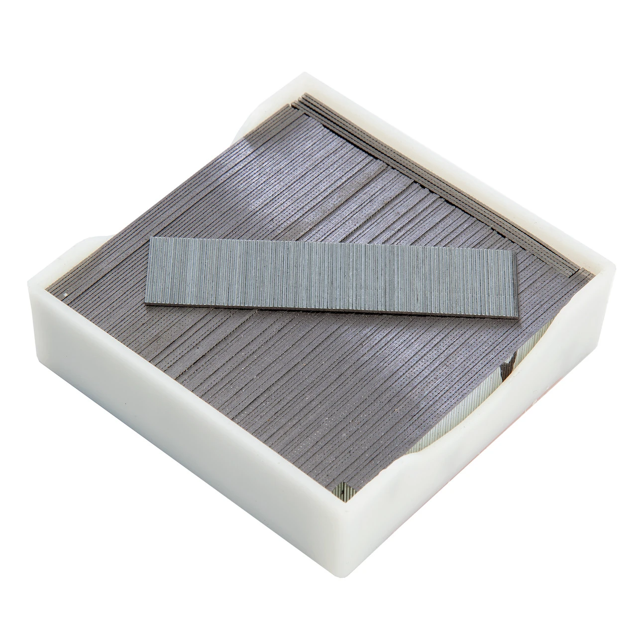The Senco CZ10ECA is a Box of 10,000 Galvanised CZ Headless Pins, 0.6mm wide and 15mm in length. They are collated at a 0-degree angle with no head, designed to fasten the smallest of trim securely leaving a nearly invisible hole.