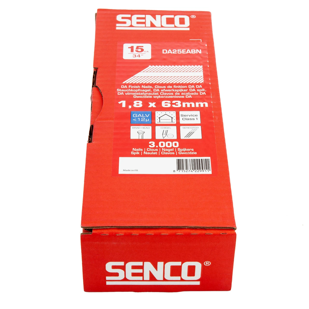 Senco DA25EABN Galvanised Collated DA Finish Nails 15 Gauge 1.8mm x 63mm (3000 in Box)