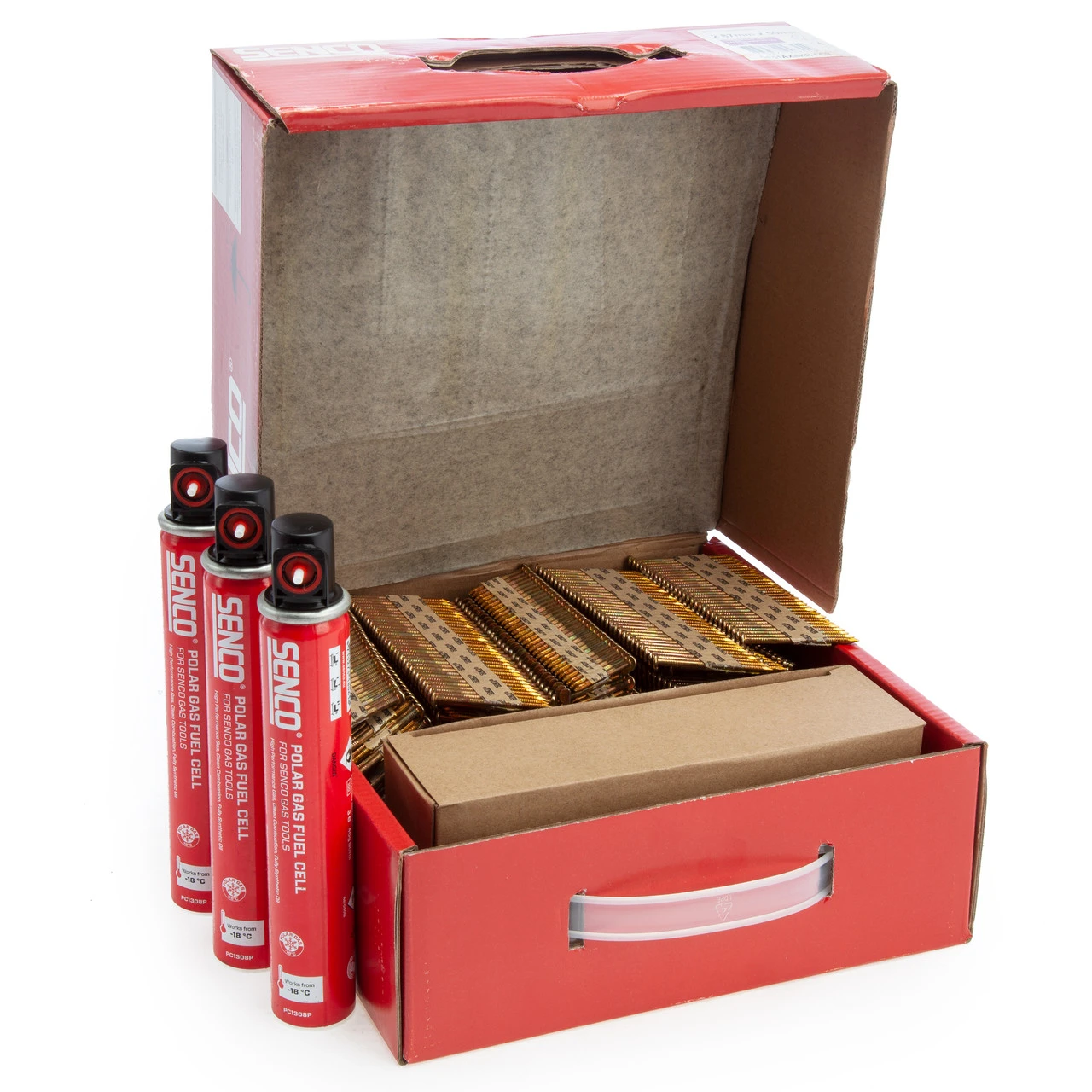 Senco Gas & Nail Pack Collated Ring Shank Nails 2.87mm x 50mm with 3 x PC1308P Polar Gas Fuel Cells