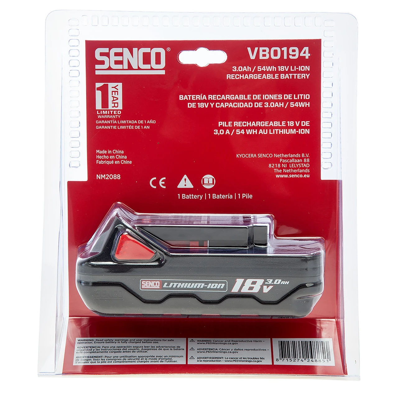 - The 3.0Ah battery is compatible with all the Senco 18v Li-ion cordless tools