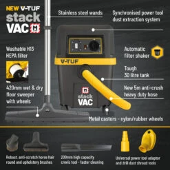 V-TUF STACKVAC Syncro M Class Wet & Dry Dust Extractor 30L (240V) – New Health & Safety Version