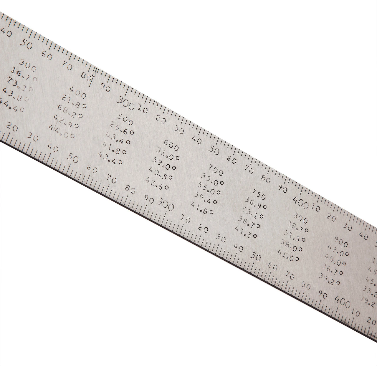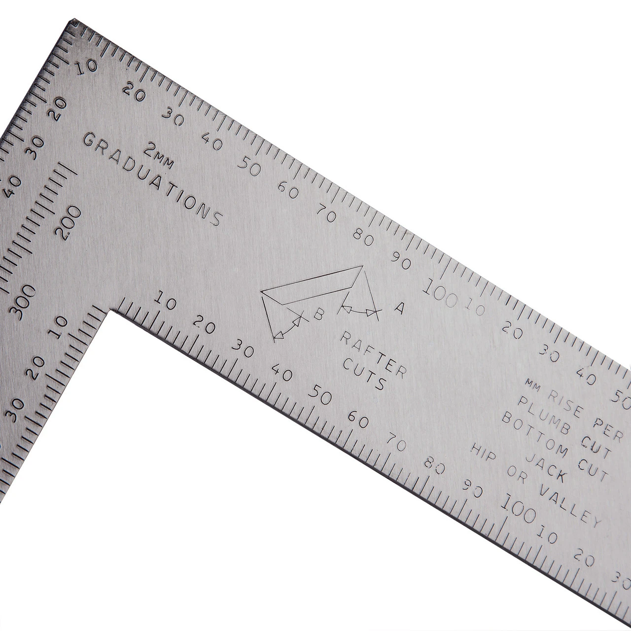 The Stanley 1-45-530 is a high quality, heavy-duty roofing square. It has a reverse reading scale and crisply embossed graduations for easy reading and features a protective lacquer coating for rust resistance.