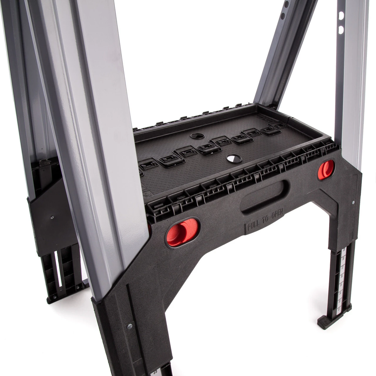 The 1-92-980 from Stanley consists of a pair of Saw Horses featuring adjustable telescopic legs, perfect for use on difficult and uneven surfaces. The legs are variable by 21.5cm extension, giving a standing height of 81 – 100cm. The heavy-duty metal legs allow a high load-bearing capacity of 1135kg (2500lbs per pair) and weigh in at 5. 25kg each (12lbs). Both sawhorses fold away flat to a size of only 85 x 69 x 9cm, handy for storage and transportation. The bi-material feet and body are made out of polypropylene and can be adjusted individually. Supplied as a Twin Pack.