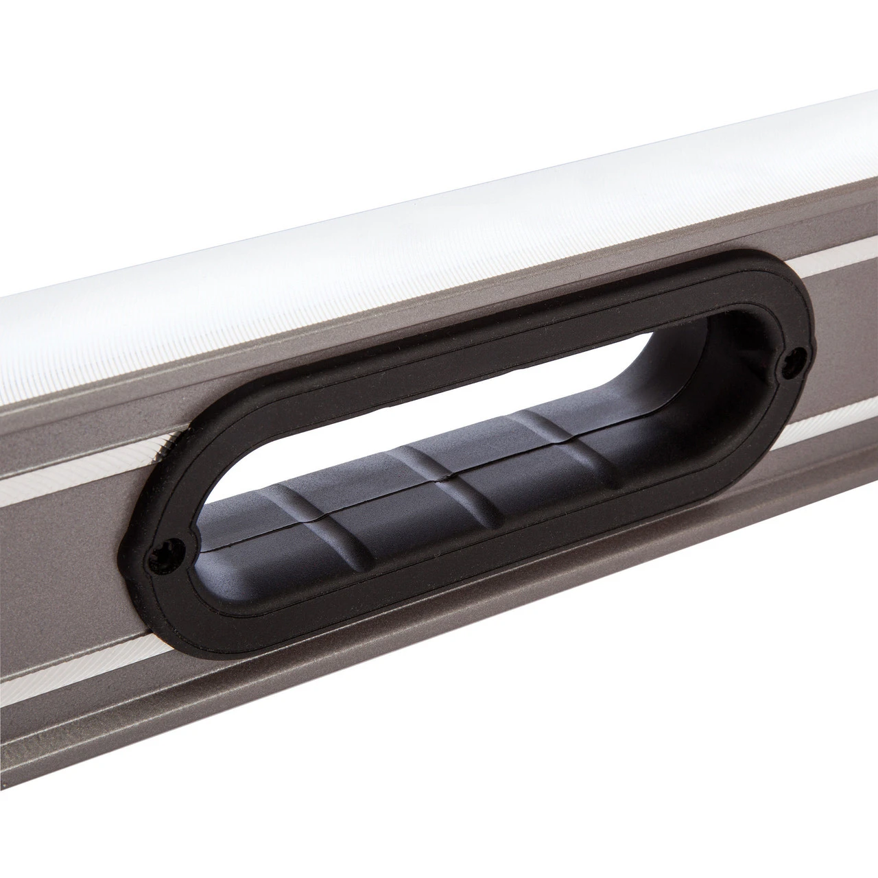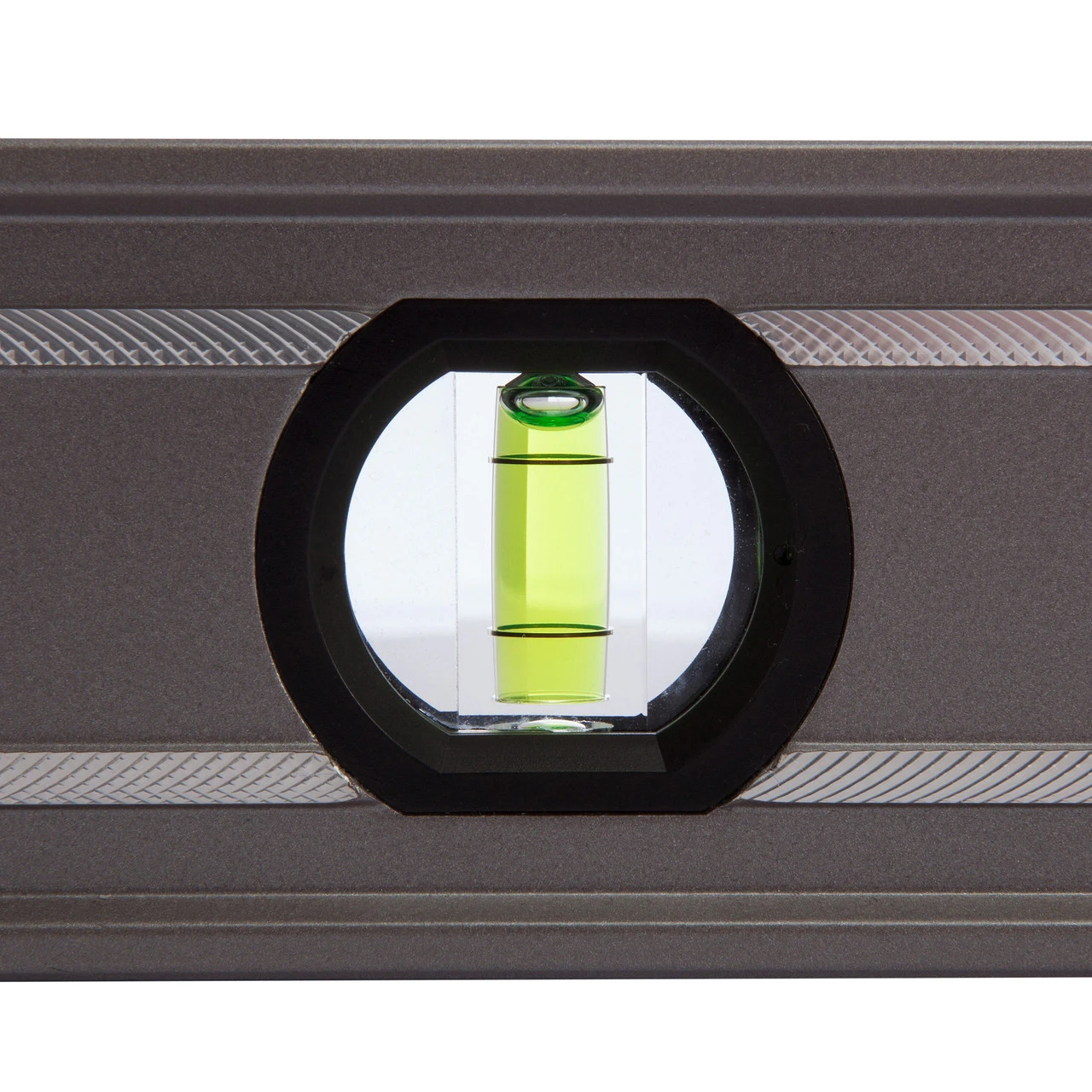 The Stanley 0-43-636 is up to 5 times stronger than other Stanley levels thanks to its rock-solid box-beam construction built into the level for stability. The solid acrylic block vials provide the best in class accuracy in 8 orientations of +/-0.5mm/m. They are magnified by 20% for improved all-round visibility.