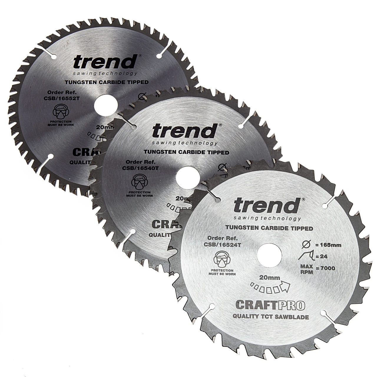The Trend CSB/165 CraftPro Saw Blade Triple Pack is a multi-pack of Tungsten Carbide tipped saw blades designed to deliver a professional finish when working with abrasive materials