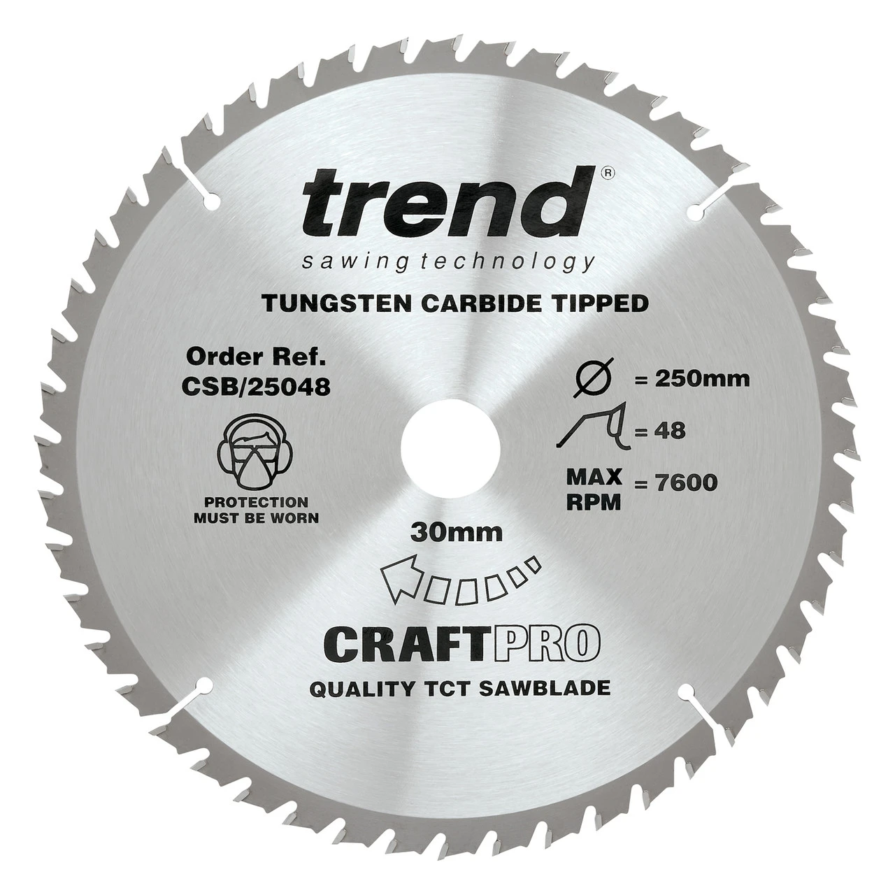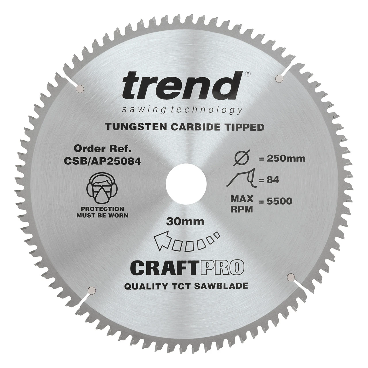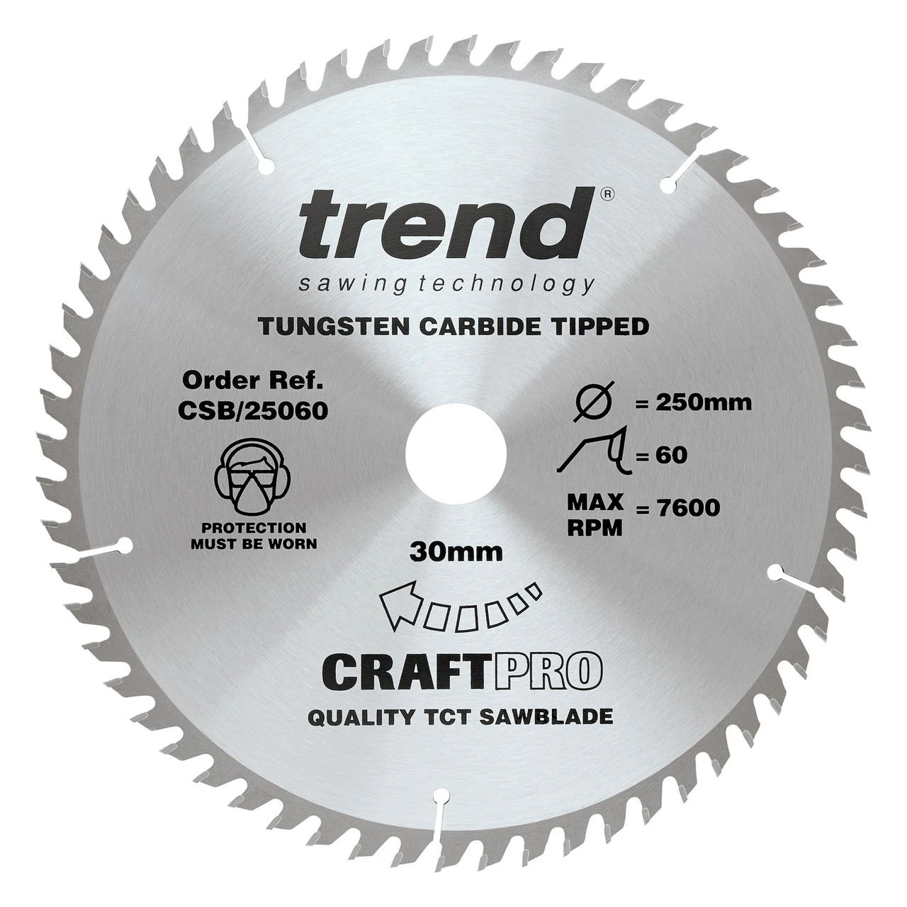 The Trend CSB/250/3PK Triple Pack of 250mm CraftPro Saw Blades have Microgranular Tungsten Carbide Tips to allow cutting of abrasive materials