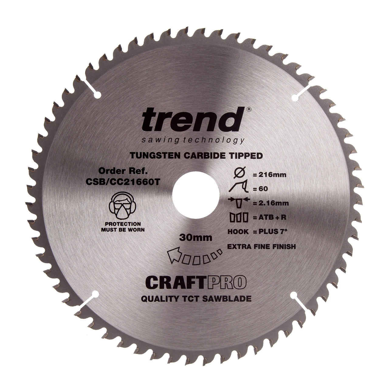 Trend CSB/CC21660T CraftPro Saw Blade Crosscut 216mm x 60 Teeth x 30mm – Thin Kerf