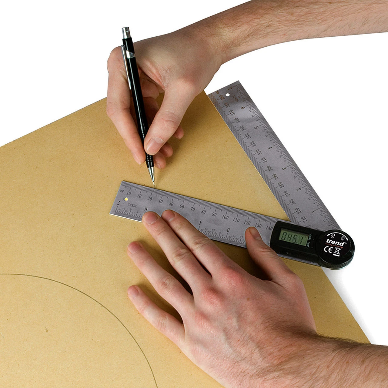 The Trend DAR/200 digital angle rule doubles as an angle finder as well as a rule. It calculates angles quickly and accurately and is ideal for use in all woodworking, construction and machining applications. This model is extendable to 400mm making it the perfect tool for any tradesman. It is perfect for finding both internal and external angles and is small enough to store in your back pocket.